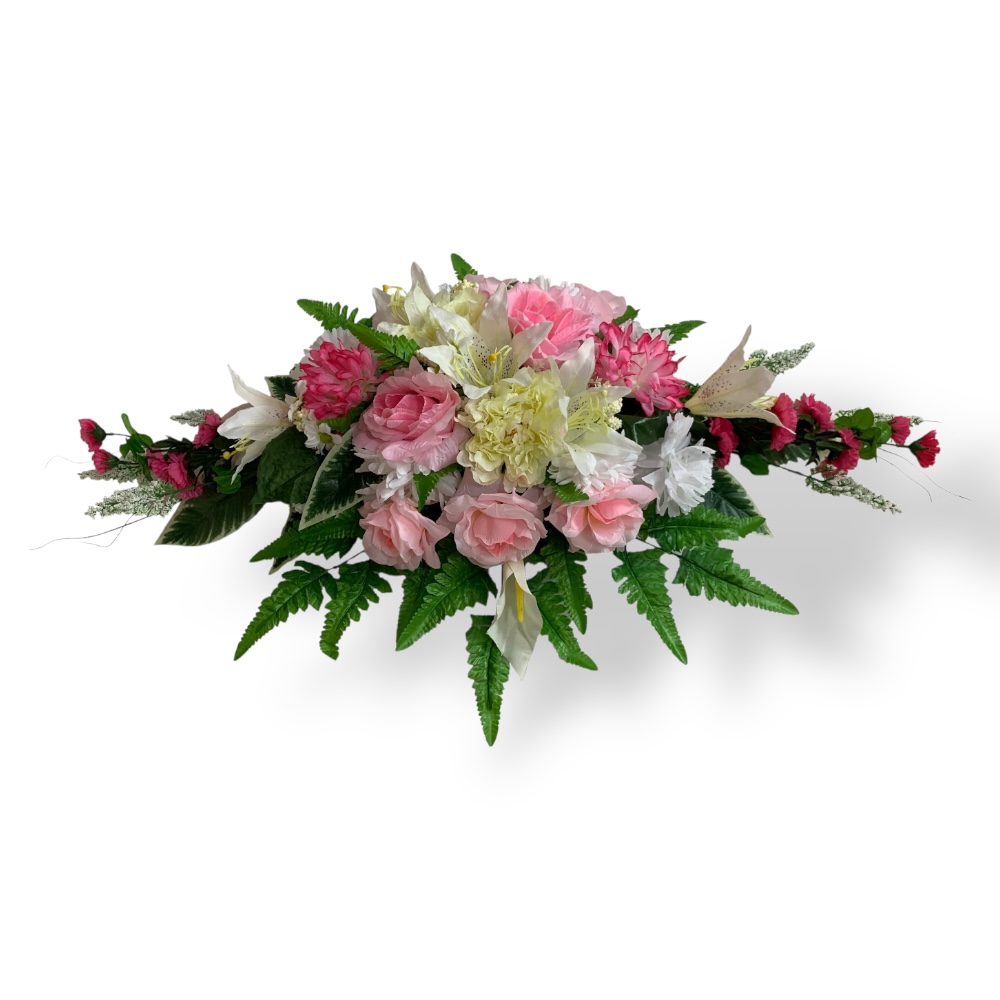 Арт. ИК-014 Композиция на гроб классика из искусственных цветов 110 см.