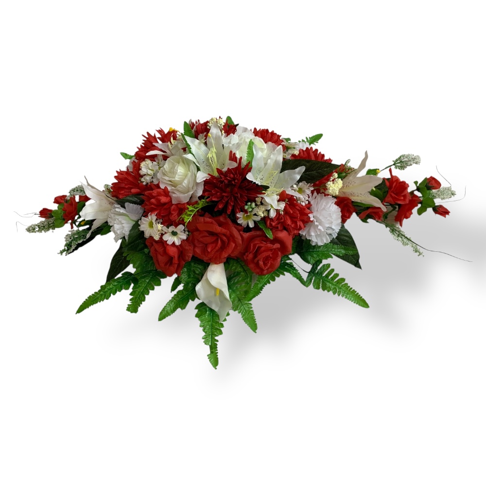 Арт. ИК-015 Композиция на гроб классика из искусственных цветов 110 см.