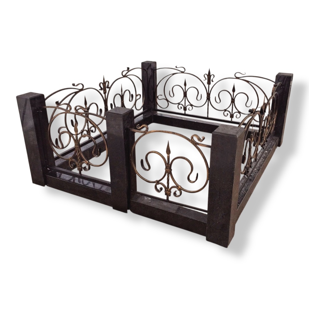 Гранитная ограда с элементами ковки Ода 1.8*2.0 м. Габбро-диабаз