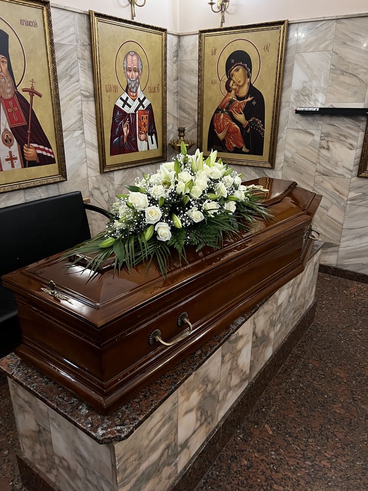 Достойный уровень. Комплект из шёлка и классический гроб обеспечивают уважительное проведение церемонии.