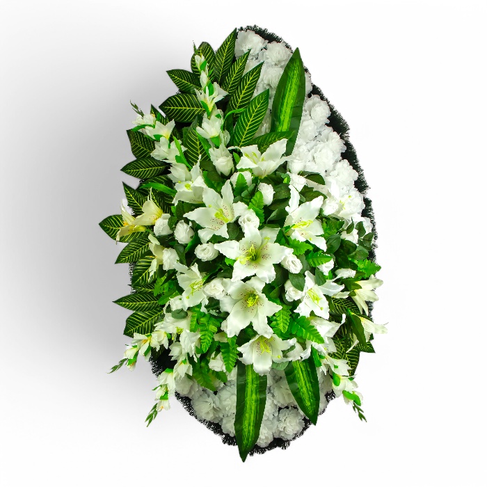 Арт. ВИ-019 Ритуальный венок эксклюзив из искусственных цветов на похороны 100 см.